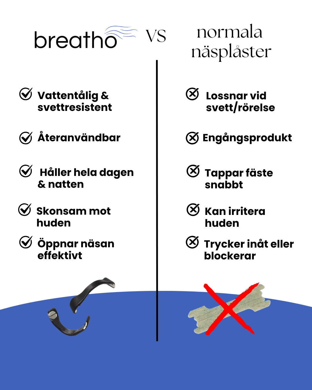 breatho öppnar upp näsan försiktigt, så att du kan andas djupt även i sömnen.